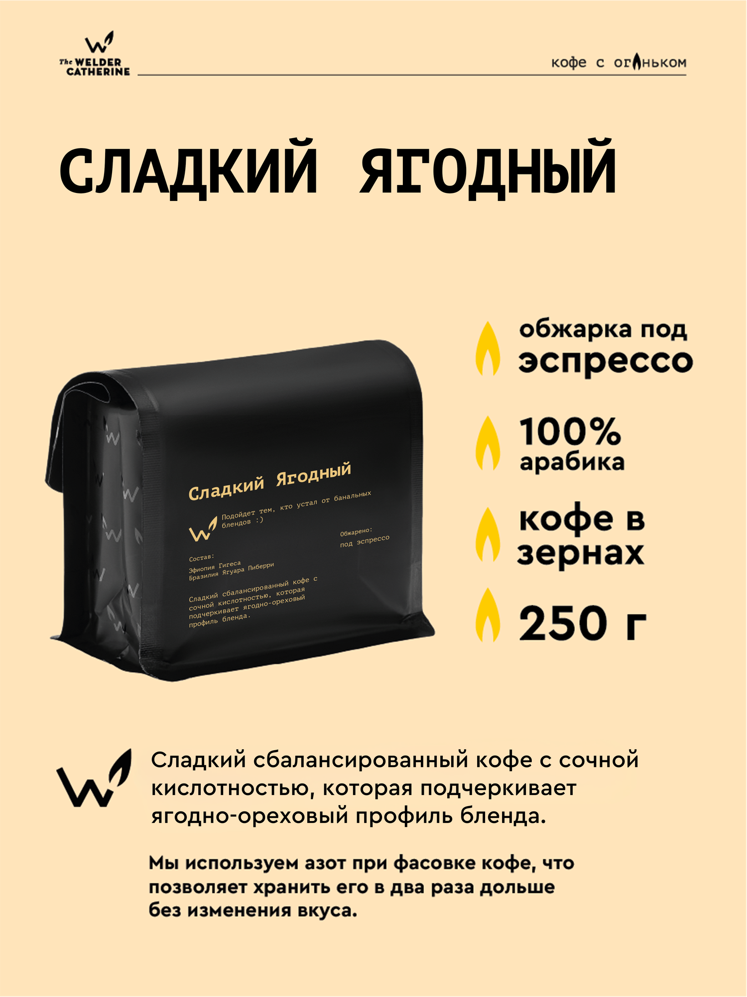Купить Кофе в зернах Сварщица Екатерина Свежий Ягодный под эспрессо — 250 гр с доставкой по всей России.