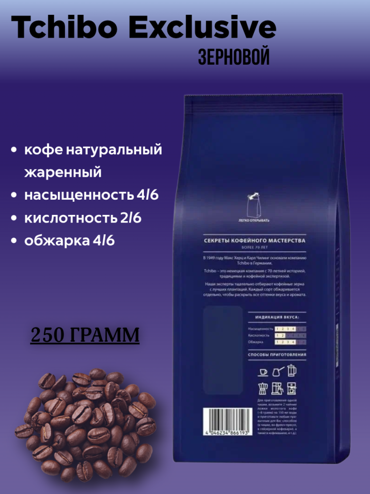 Кофе в зернах Tibio Exclusive 250 грамм 2 штуки: сравнение цен, характеристики, фото, актуальное наличие и цены.