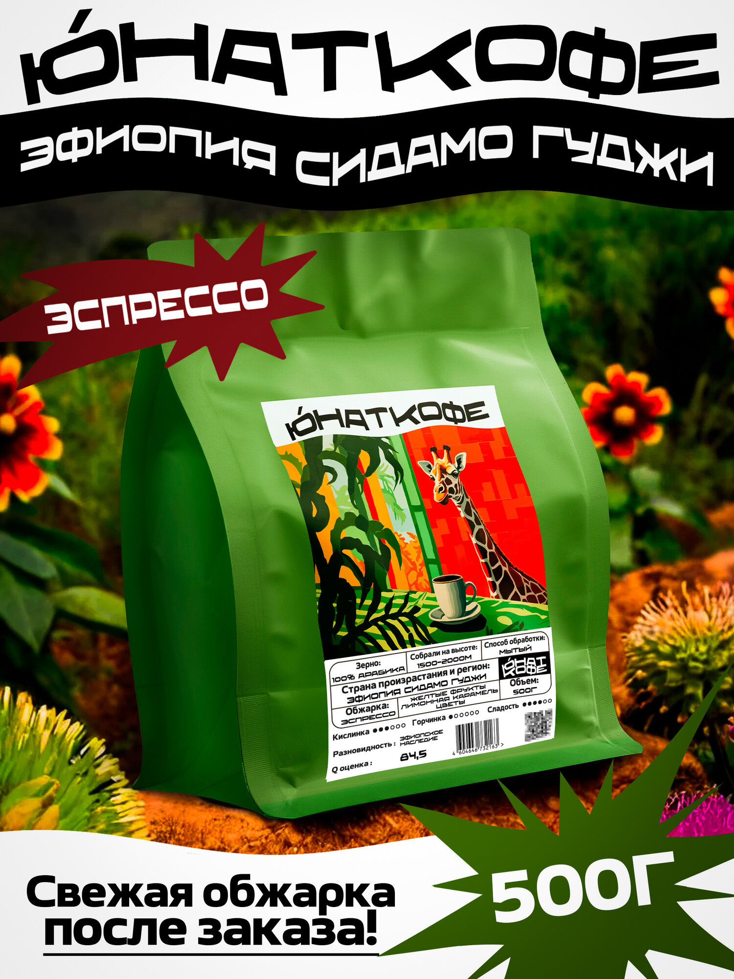 Кофе в зернах Юнат Кофе Эфиопия Сидамо Гуджи 100% арабика, обжарим перед отправкой, 500гр, средняя обжарка: сравнение цен, характеристики, фото, актуальное наличие и цены.