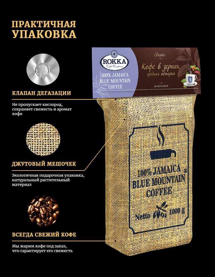 | Состав набора | Кофе Ямайка Блю Маунтин в металлизированном пакете с клапаном, в джутовом мешочке! |