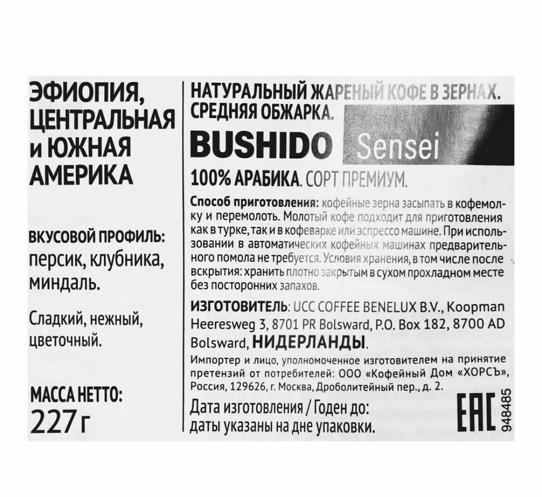 Купить Кофе зерновой BUSHIDO Sensei , средняя обжарка, арабика, 227 гр. с доставкой по всей России. Кофе зерновой BUSHIDO Sensei , средняя обжарка, арабика, 227 гр.: сравнение цен, характеристики, фото, актуальное наличие и цены.