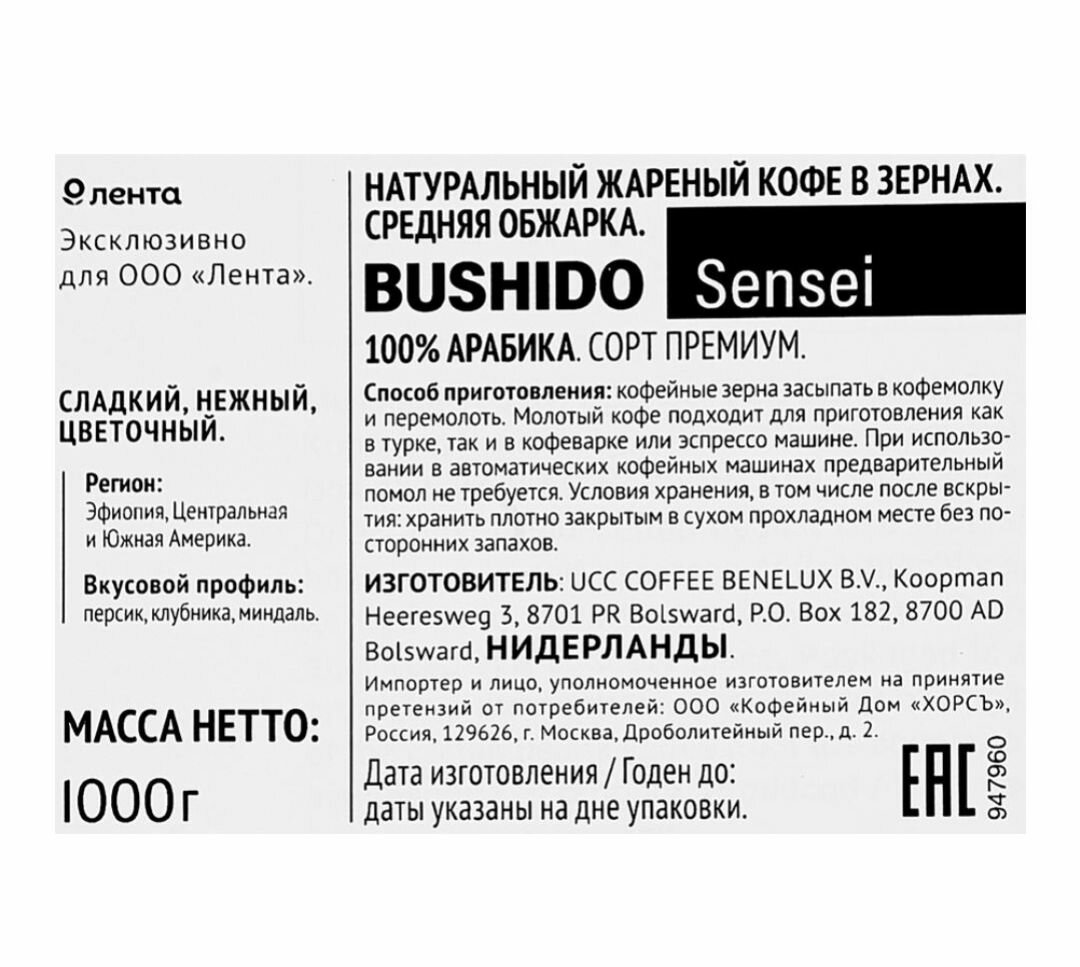 Кофе зерновой BUSHIDO Sensei , средняя обжарка, натуральный, 1000 грамм: сравнение цен, характеристики, фото, актуальное наличие и цены.