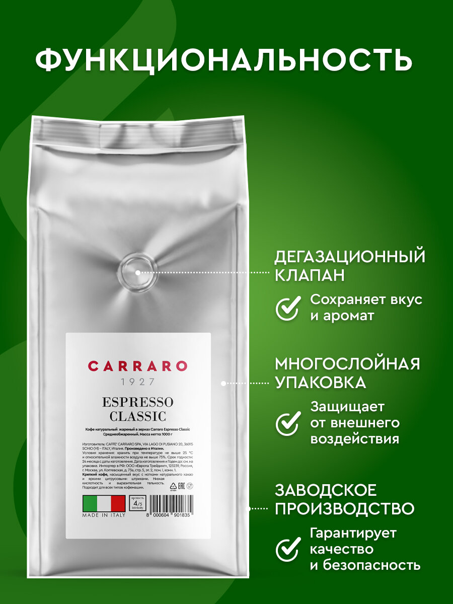 Купить Кофе зерновой Carraro Espresso Classic 1 кг с доставкой по всей России.