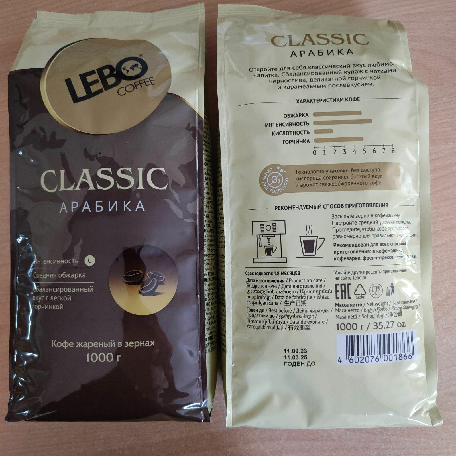Кофе 1000г зерно Арабика LEBO Classic натуральный, средней обжарки, интенсивность 6: сравнение цен, характеристики, фото, актуальное наличие и цены.