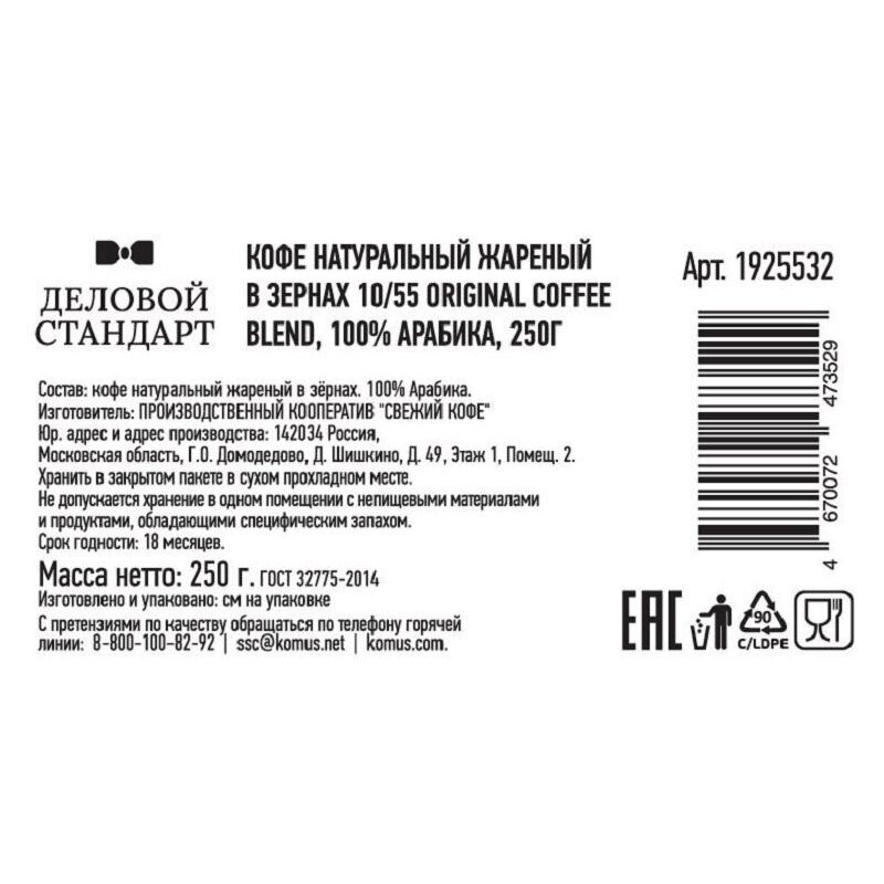 Купить Деловой Стандарт Кофе жареный в зернах 100% Арабика, 250г с доставкой по всей России.