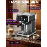 Купить Кофейная машина PROLISS, 20 бар, кофемашина, 1400 Вт, 2800 мл. Эспрессо-машина с доставкой по всей России.