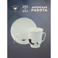 Купить Кофейная пара, 165 мл. Императорский фарфоровый завод ИФЗ. Коллекция «Котовасия», форма «Майская», рисунок «Кошки-мышки». Костяной фарфор. с доставкой по всей России.