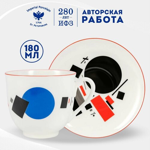 Кофейная пара. Форма «Ландыш», рисунок «Калейдоскоп с синим и черным диском». Костяной фарфор. 180 мл. Императорский фарфоровый завод ИФЗ ЛФЗ: сравнение цен, характеристики, фото, актуальное наличие и цены.