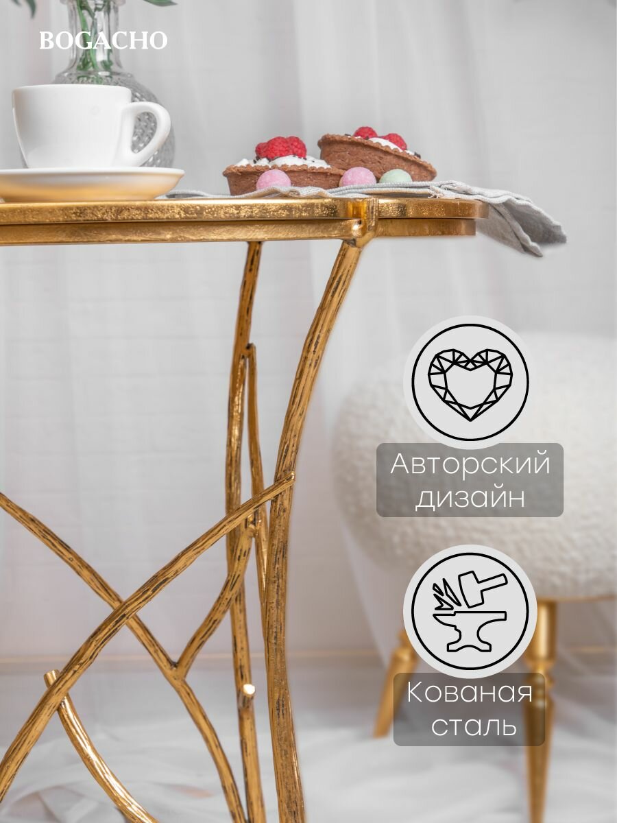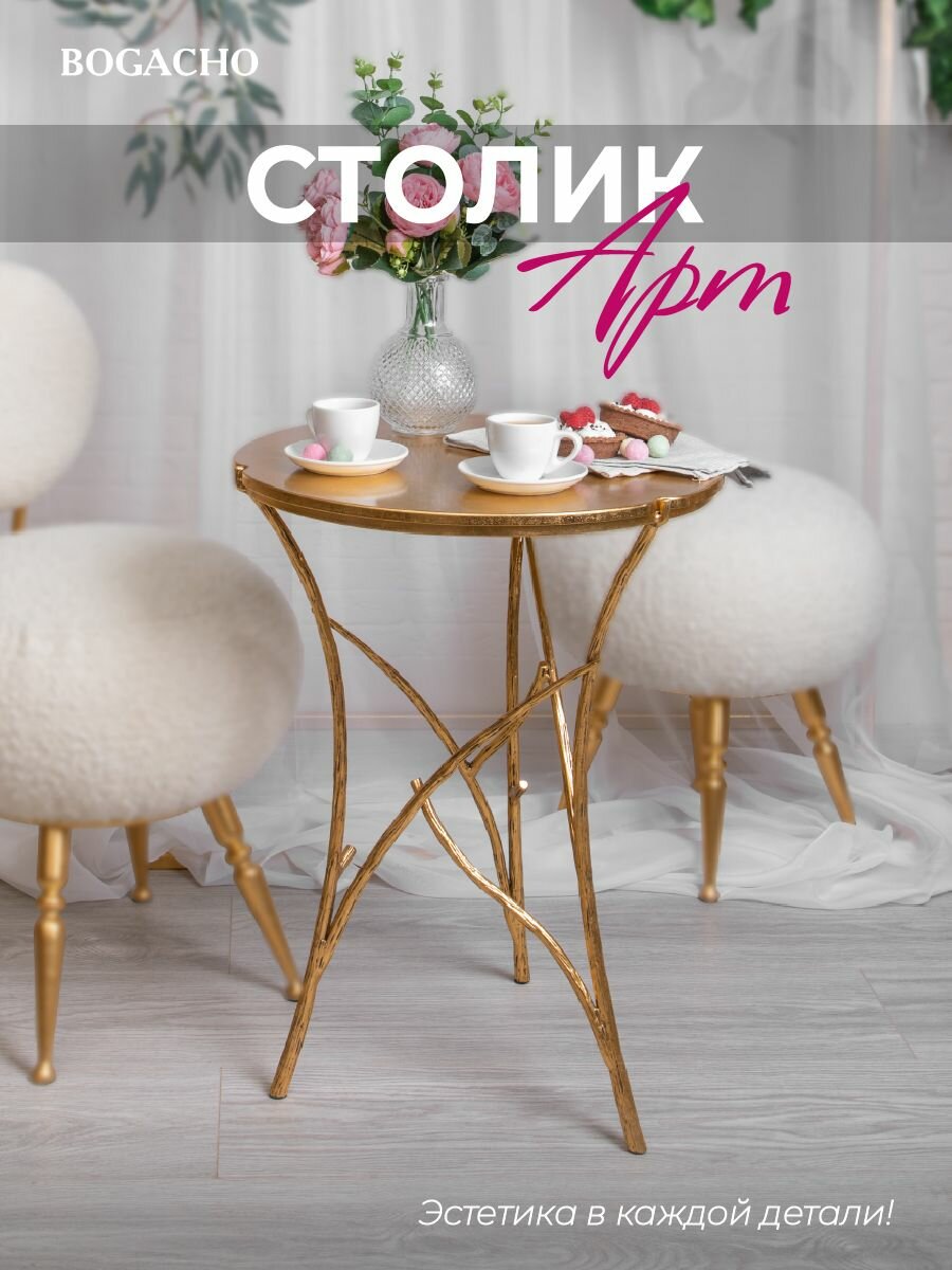Кофейный круглый столик Bogacho Арт бронзового цвета с деревянной столешницей и коваными ножками в виде ветвей: сравнение цен, характеристики, фото, актуальное наличие и цены.