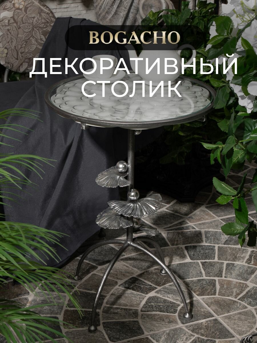 Кофейный круглый столик Bogacho Терра Роуз серебристый со стеклянной столешницей и кованой ножкой с лепестками: сравнение цен, характеристики, фото, актуальное наличие и цены.