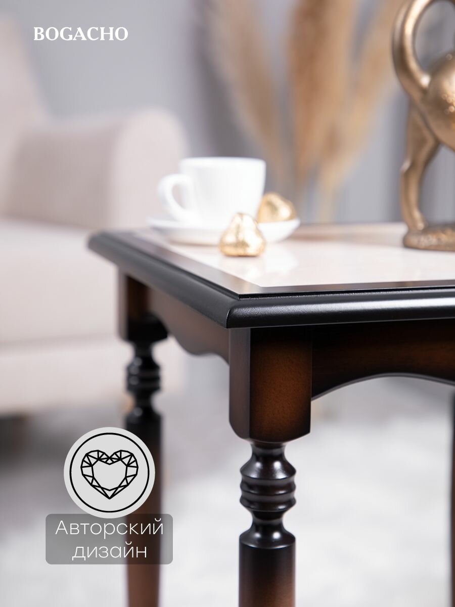 Кофейный квадратный столик Bogacho Оникс со столешницей из керамогранита и фигурными деревянными ножками: сравнение цен, характеристики, фото, актуальное наличие и цены.