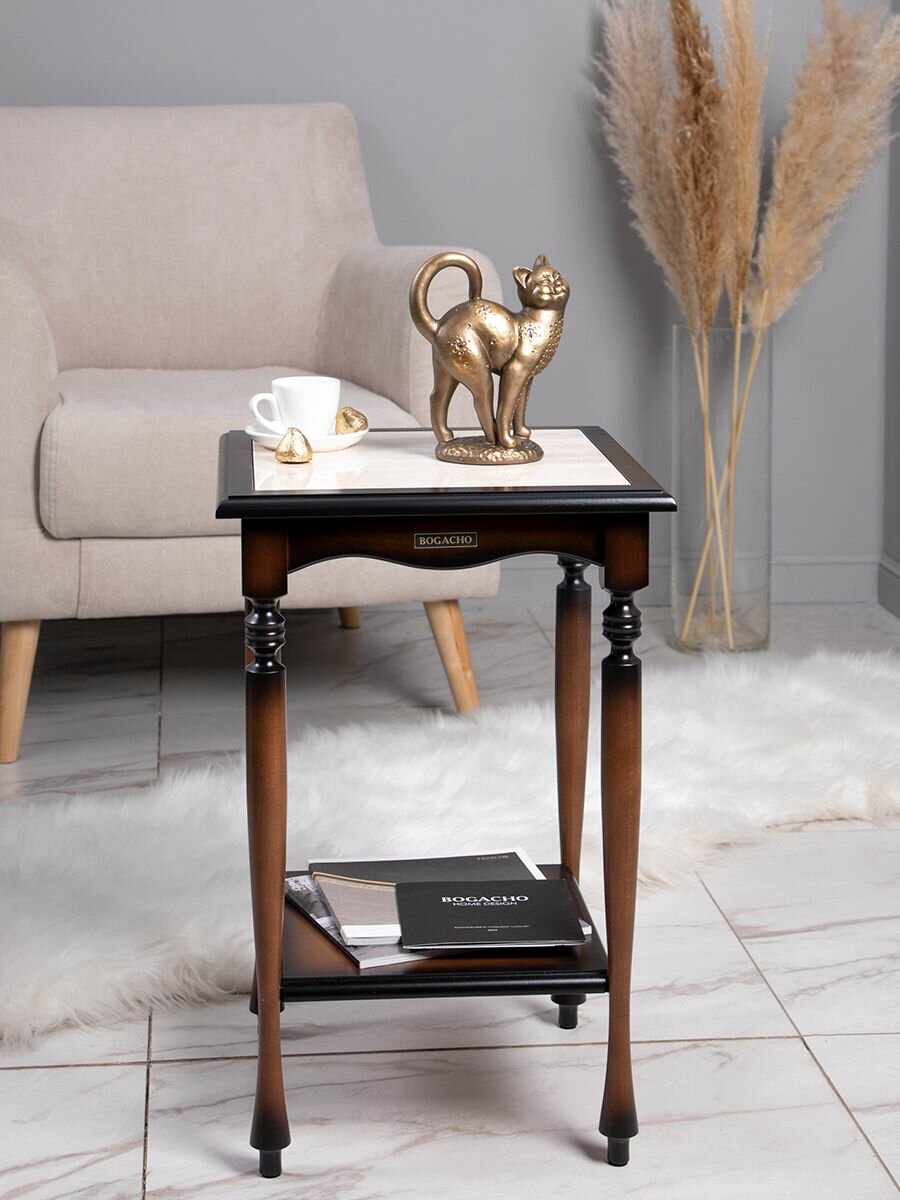 Купить Кофейный квадратный столик Bogacho Оникс со столешницей из керамогранита и фигурными деревянными ножками с доставкой по всей России.