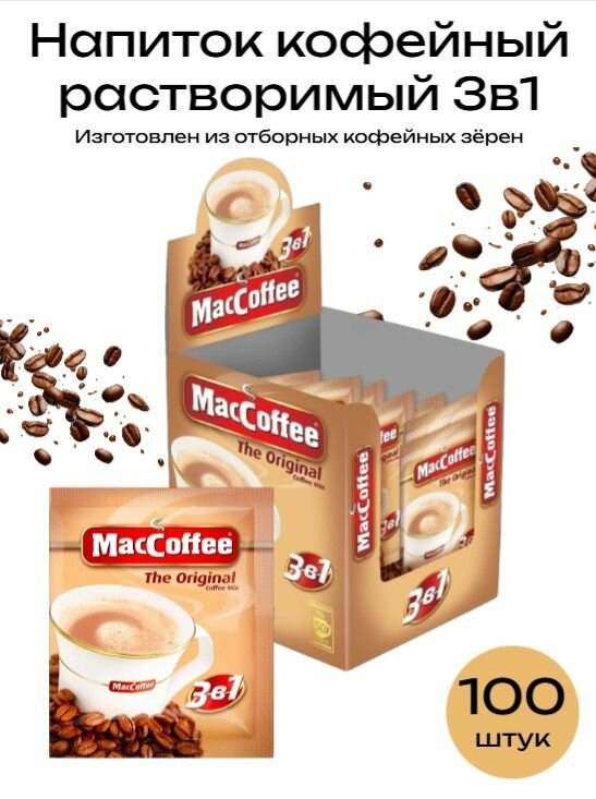 Купить Напиток кофейный растворимый 3 в 1 «The Original», MacCoffee, 100 штук по 20 г. из отборных кофейных зёрен с доставкой по всей России.
