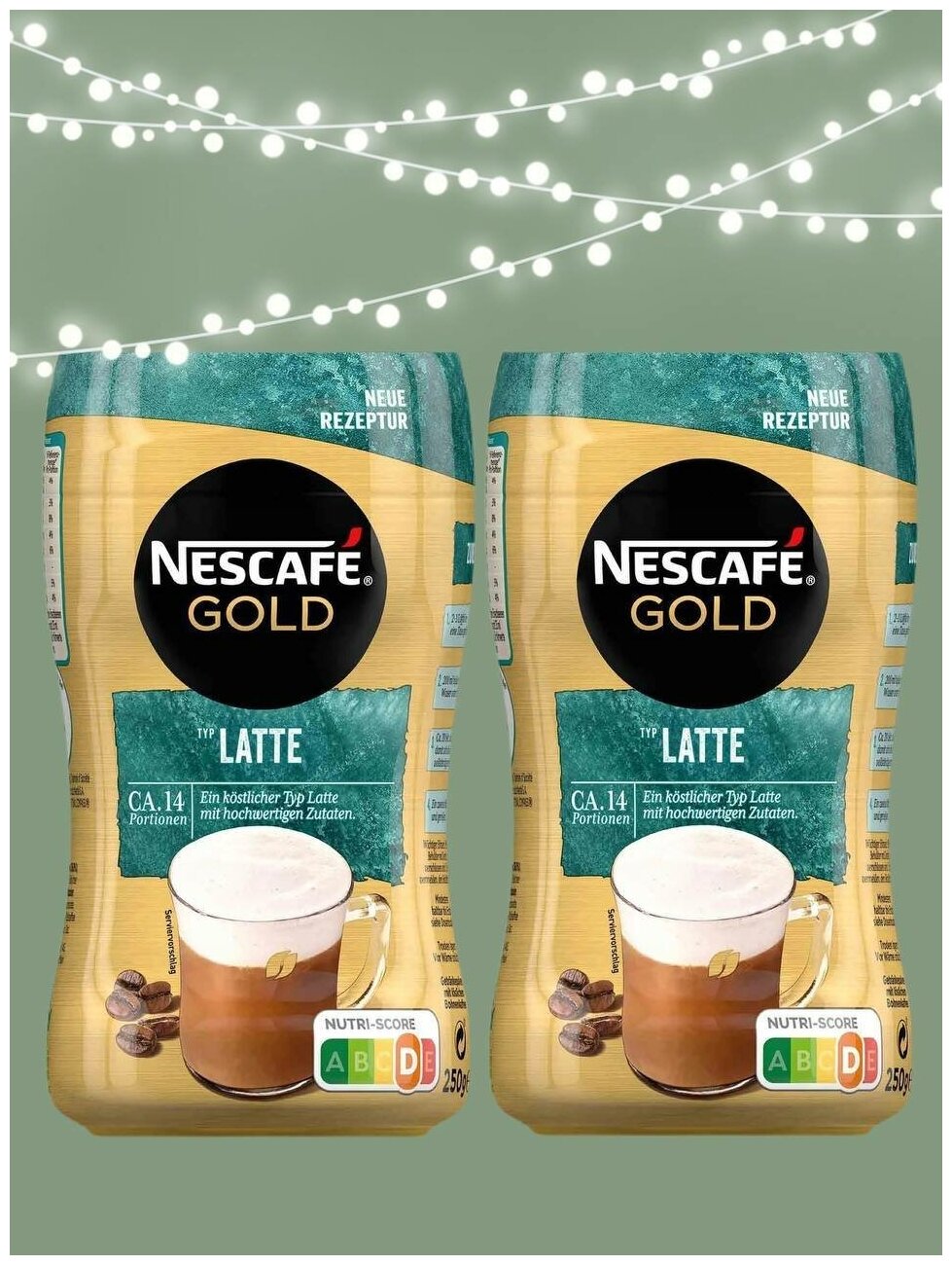 Купить Кофейный напиток Nescafe Gold Latte, (2×225 г) Финляндия, полезный подарок на 23 февраля, ароматизированый кофе, на 8 марта коллеге с доставкой по всей России.