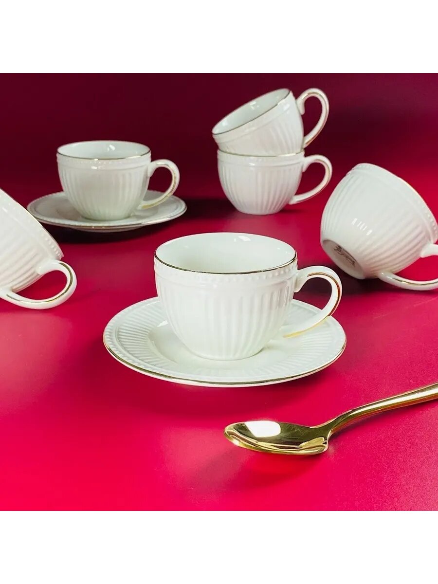 Кофейный набор из фарфора Lenardi — это идеальное решение для ценителей изысканной посуды. Этот сервиз включает в себя 6 чашек объемом 110 мл и 6 блюдец, что делает его подходящим для 6 персон. Классический дизайн и высококачественный фарфор обеспечивают долговечность и эстетическую привлекательность. Набор идеально подходит как для ежедневного использования, так и для особых случаев, добавляя элегантность в вашу столовую. Фарфоровая посуда Lenardi отличается прочностью и устойчивостью к высоким температурам, что делает ее идеальной для подачи горячих напитков, таких как кофе и чай. Этот кофейный сервиз станет отличным подарочным набором для мамы или подруги благодаря своему стильному оформлению и практичности. Чайный набор также может использоваться для подачи других горячих напитков, что делает его универсальным элементом вашей коллекции посуды. Включение 6 штук чашек и блюдец в набор позволяет удобно встречать друзей, обеспечивая комфорт и уют. Кофейные сервизы Lenardi и Lefard — это недорогой и качественный выбор для тех, кто ценит стиль и функциональность. Этот фарфоровый сервиз станет неотъемлемой частью вашего домашнего уюта, добавляя нотку изысканности в каждое чаепитие.