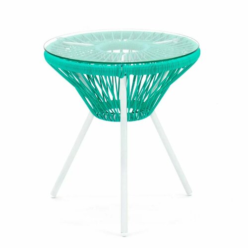 Купить Кофейный стол KORNERA «Акапулько», каркас белый, искусственный ротанг аквамарин с доставкой по всей России.