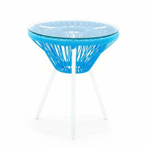 Купить Кофейный стол KORNERA «Акапулько», каркас белый, искусственный ротанг голубой с доставкой по всей России.