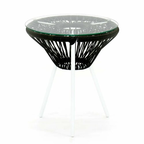 Купить Кофейный стол KORNERA «Акапулько», каркас белый, искусственный ротанг хаки с доставкой по всей России.