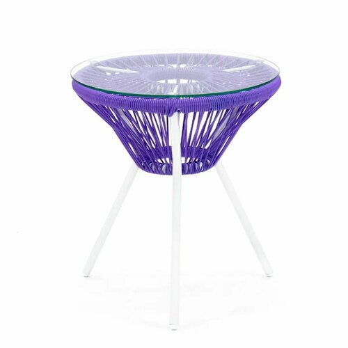 Купить Кофейный стол KORNERA «Акапулько», каркас белый, искусственный ротанг лавандовый с доставкой по всей России.
