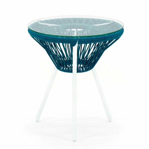 Кофейный стол KORNERA «Акапулько», каркас белый, искусственный ротанг темно-бирюзовый: сравнение цен, характеристики, фото, актуальное наличие и цены.