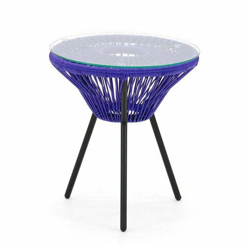 Столешница стола изготовлена из искусственного ротанга фиолетового цвета, который приятно радует глаз и добавляет яркие акценты в интерьер. Плетеная текстура столешницы придает столу изысканный вид и делает его отличным выбором для уличного использования.