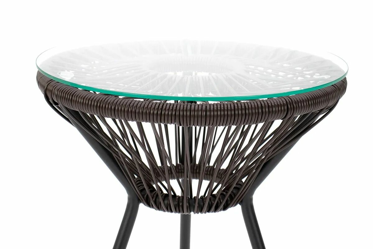 Стол выполнен из прочного искусственного ротанга шоколадного цвета, который приятно радует глаз и добавляет яркие акценты в ваш интерьер. Стальной каркас черного цвета обеспечивает надежность и устойчивость, что делает этот стол отличным выбором для уличного использования.