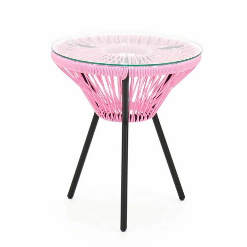 Стол выполнен из прочного искусственного ротанга розового цвета, который приятно радует глаз и добавляет яркие акценты в ваш интерьер. Стальной каркас черного цвета обеспечивает надежность и устойчивость, что делает этот стол отличным выбором для уличного использования.