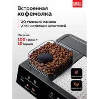 В устройстве предусмотрено всё, что вы ждёте от электрической кофеварки: автоматический капучинатор, встроенная кофемолка с 20 степенями помола, мощность 1350 Вт, регулировка объёма напитка и даже функция холодного эспрессо. Для кофеварки рожковой с капучинатором вы можете использовать кофе в зернах для кофемашин или молотый кофе, настраивая вкус под свои предпочтения.