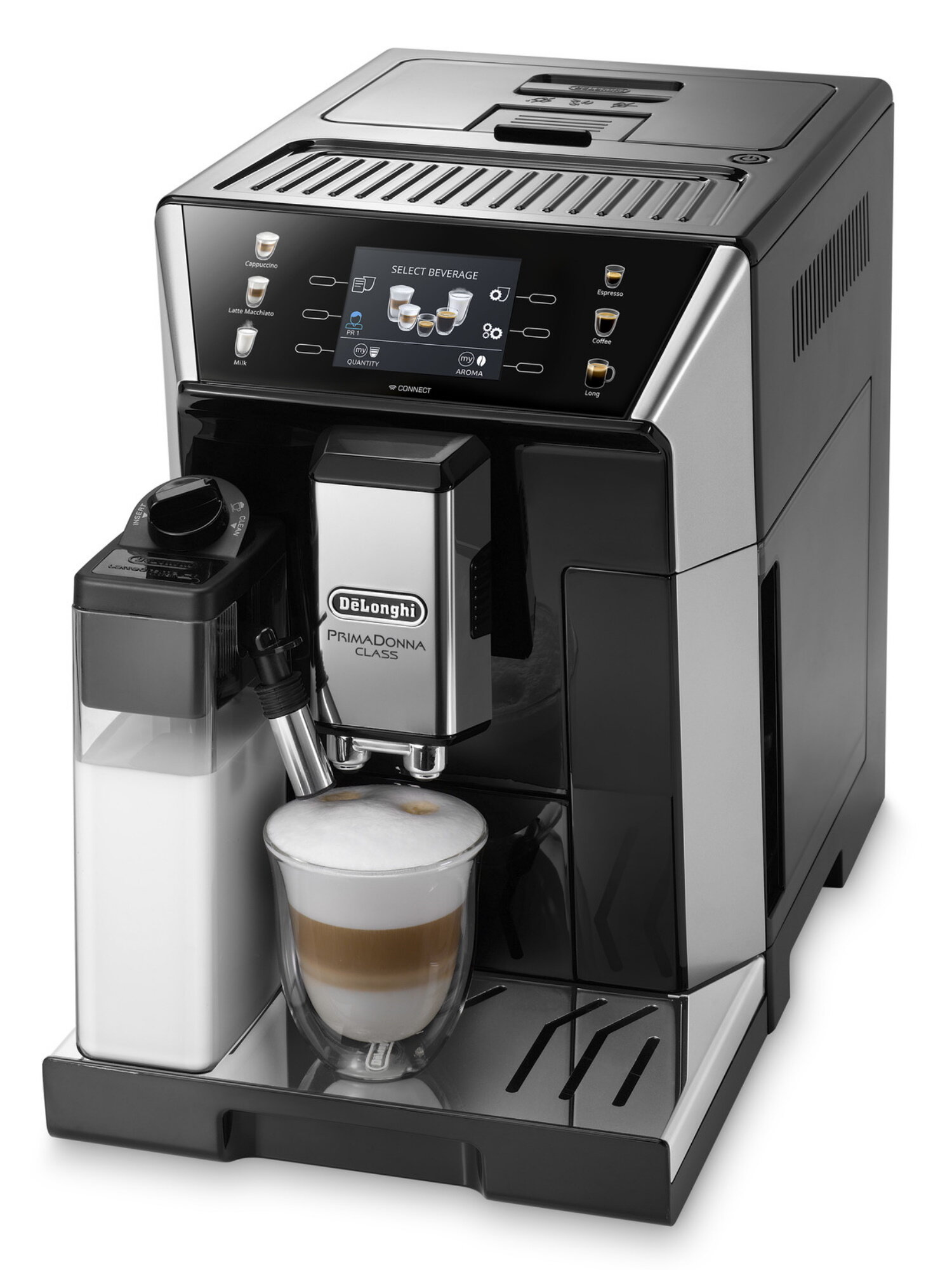Купить Кофемашина автоматическая зерновая DeLonghi PrimaDonna Class ECAM550.65. SB с авто капучинатором, приготовление 2 порций и сохранение рецептов, 13 рецептов, 13 степеней помола, металлик/черная с доставкой по всей России. Кофемашина автоматическая зерновая DeLonghi PrimaDonna Class ECAM550.65. SB с авто капучинатором, приготовление 2 порций и сохранение рецептов, 13 рецептов, 13 степеней помола, металлик/черная: сравнение цен, характеристики, фото, актуальное наличие и цены.