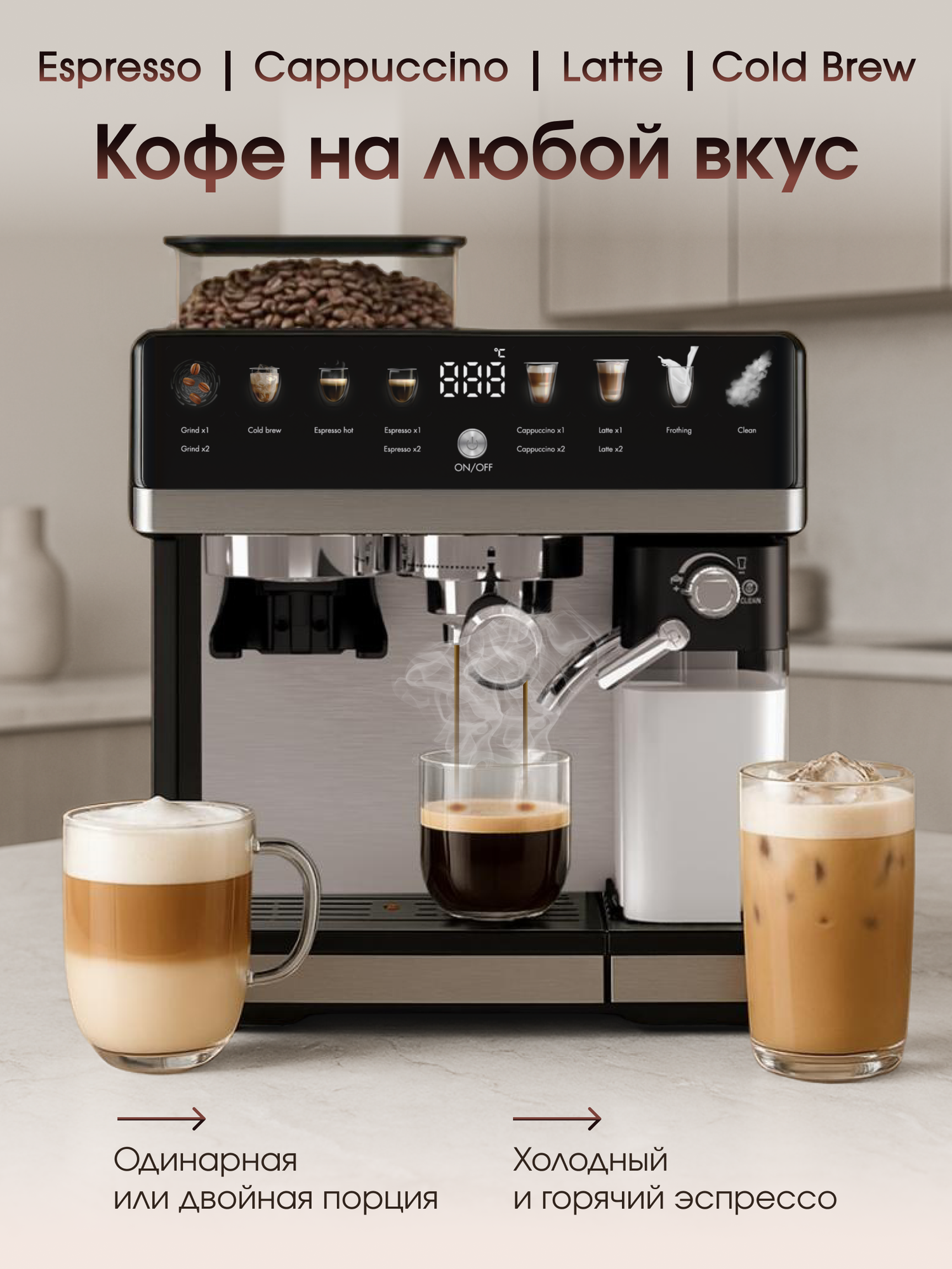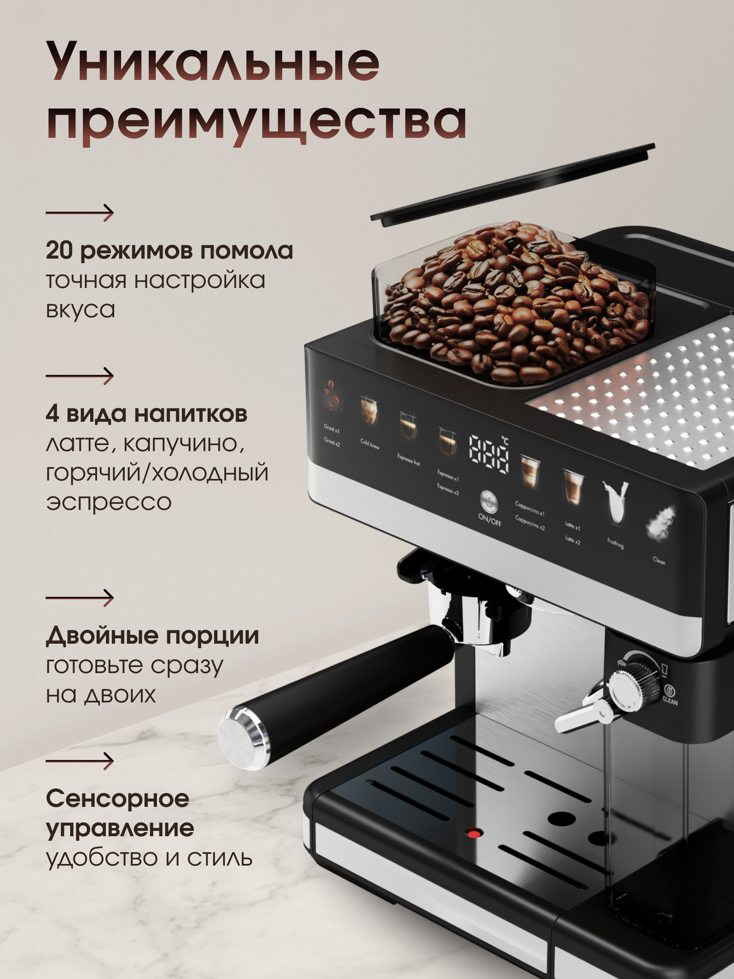 Кофемашина автоматическая с капучинатором, зерновая/капсульная, 20 степеней помола, сенсорное управление: сравнение цен, характеристики, фото, актуальное наличие и цены.