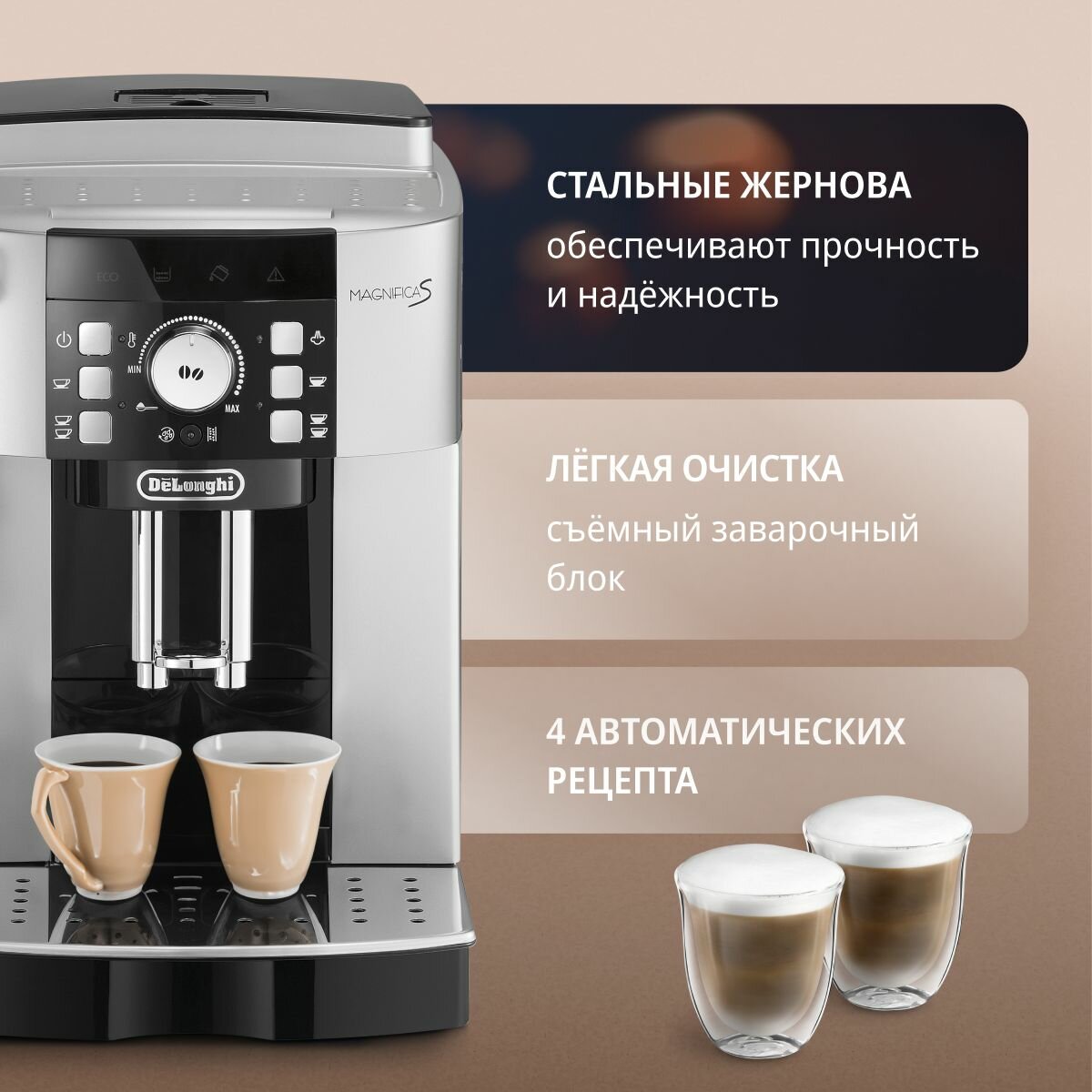 Купить Кофемашина автоматическая зерновая Magnifica S DeLonghi ECAM21.117. B с капучинатором и встроенной кофемолкой с доставкой по всей России. Кофемашина автоматическая зерновая Magnifica S DeLonghi ECAM21.117. B с капучинатором и встроенной кофемолкой: сравнение цен, характеристики, фото, актуальное наличие и цены.