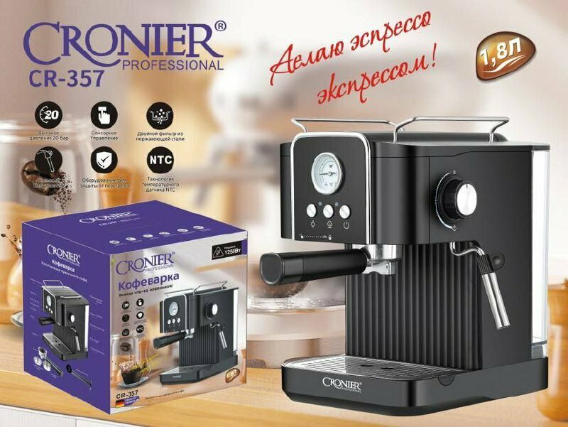 Кофемашина Cronier Professional CR-357, Кофеварка рожковая, Полуавтоматическая с капучинатором, Черная: сравнение цен, характеристики, фото, актуальное наличие и цены.