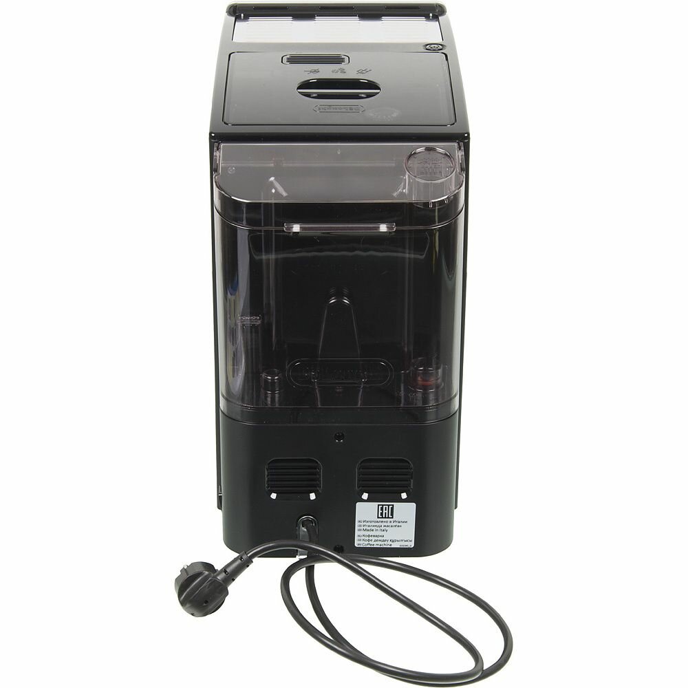 контейнер для отходов на 12 порций; функция энергосбережения; регулировка высоты узла подачи кофе 85-140 мм; в комплекте: мензурка-дозатор для молотого кофе, кисточка для очистки, фильтр для смягчения воды, тест-полоска жесткости воды, средство для удаления накипи; длина сетевого шнура 1.15 м