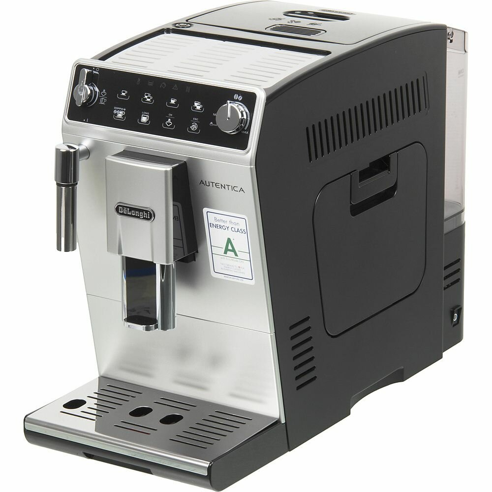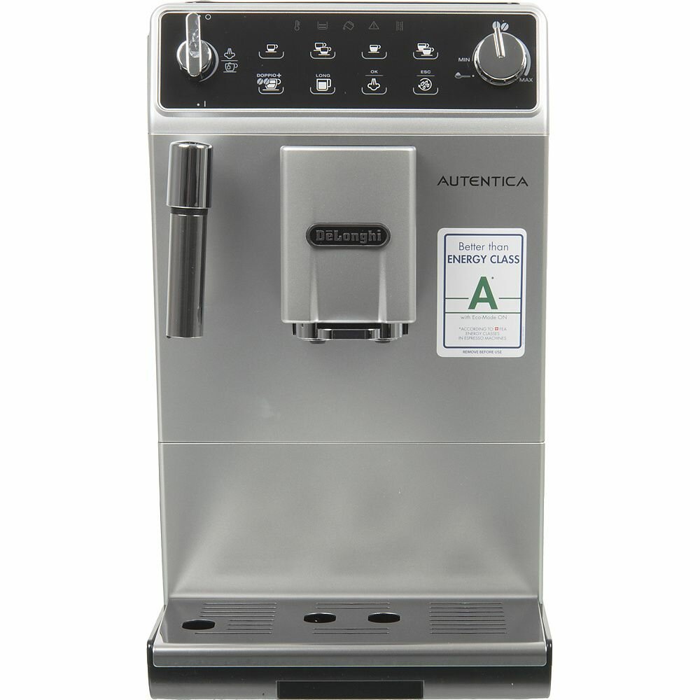 Управление производится при помощи сенсорной панели и поворотного регулятора. Наглядные рисунки помогут легко разобраться в настройках и выбрать объем порции и крепость напитка. Отдельные кнопки выведены под приготовление кофе-long и Doppio+ (двойной эспрессо с особенно насыщенным вкусом и ароматом). Диспенсер регулируется по высоте в диапазоне от 85 до 140 мм под чашки разного размера. Для их подогрева есть специальная панель на верхней стороне корпуса.