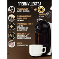 | Дополнительные функции | автоотключение после приготовления напитка, блокировка включения без воды, быстрый пар, подогрев чашек, программа автоматической очистки |