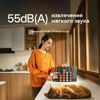 Габариты устройства (33,2 × 9,0 × 21,2 см) сопоставимы с листом формата А4, что позволяет ему органично вписаться в интерьер любой кухни. Сдержанный минималистичный дизайн и серый цвет подчеркивают эстетику современного пространства. Уровень шума не превышает 55 дБ(А), что делает использование комфортным даже рано утром. А интеллектуальная система автоматического отключения через 10 минут помогает экономить электроэнергию.
