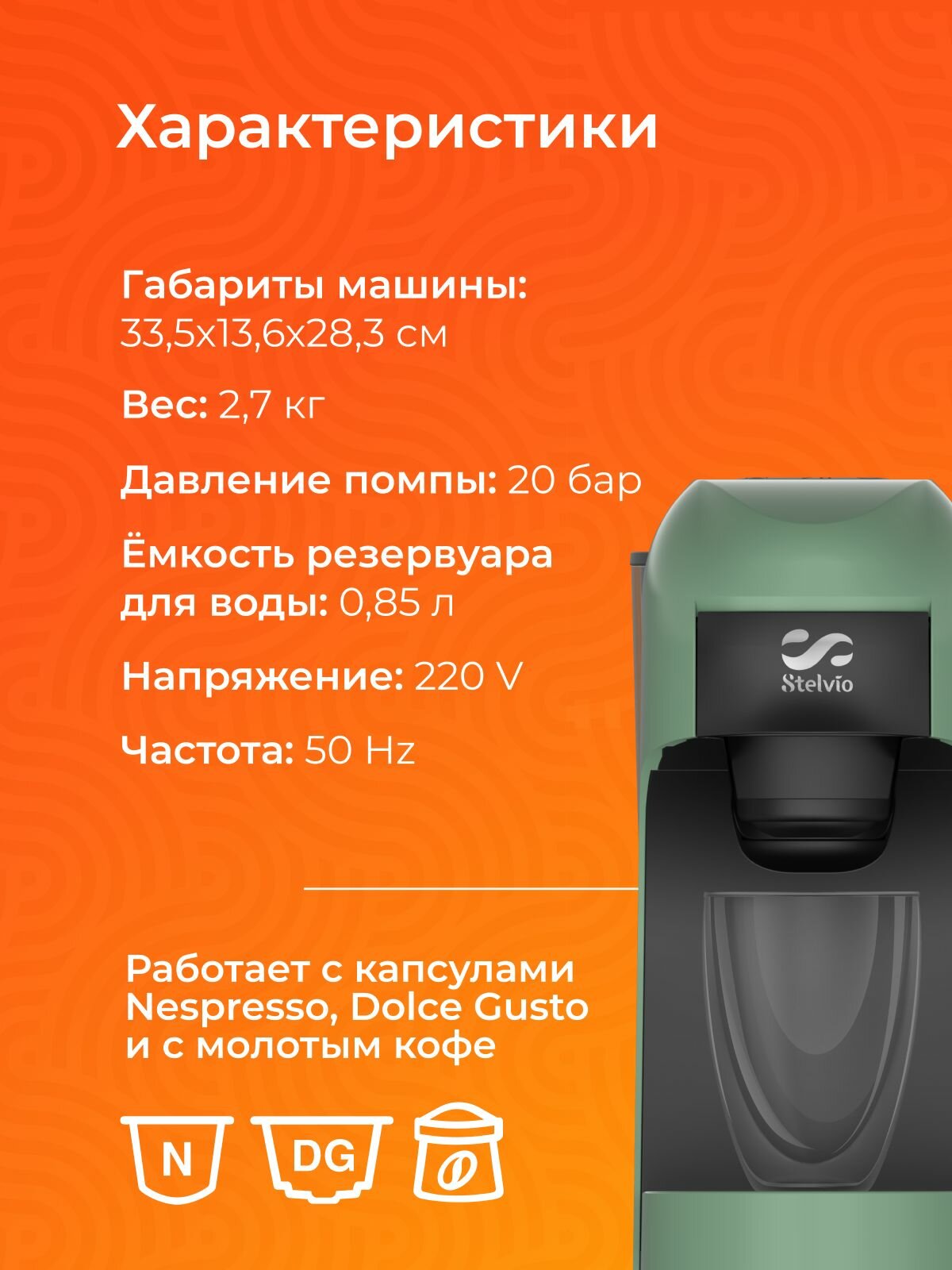 Кофемашина капсульная Stelvio XC300 зеленая: сравнение цен, характеристики, фото, актуальное наличие и цены.