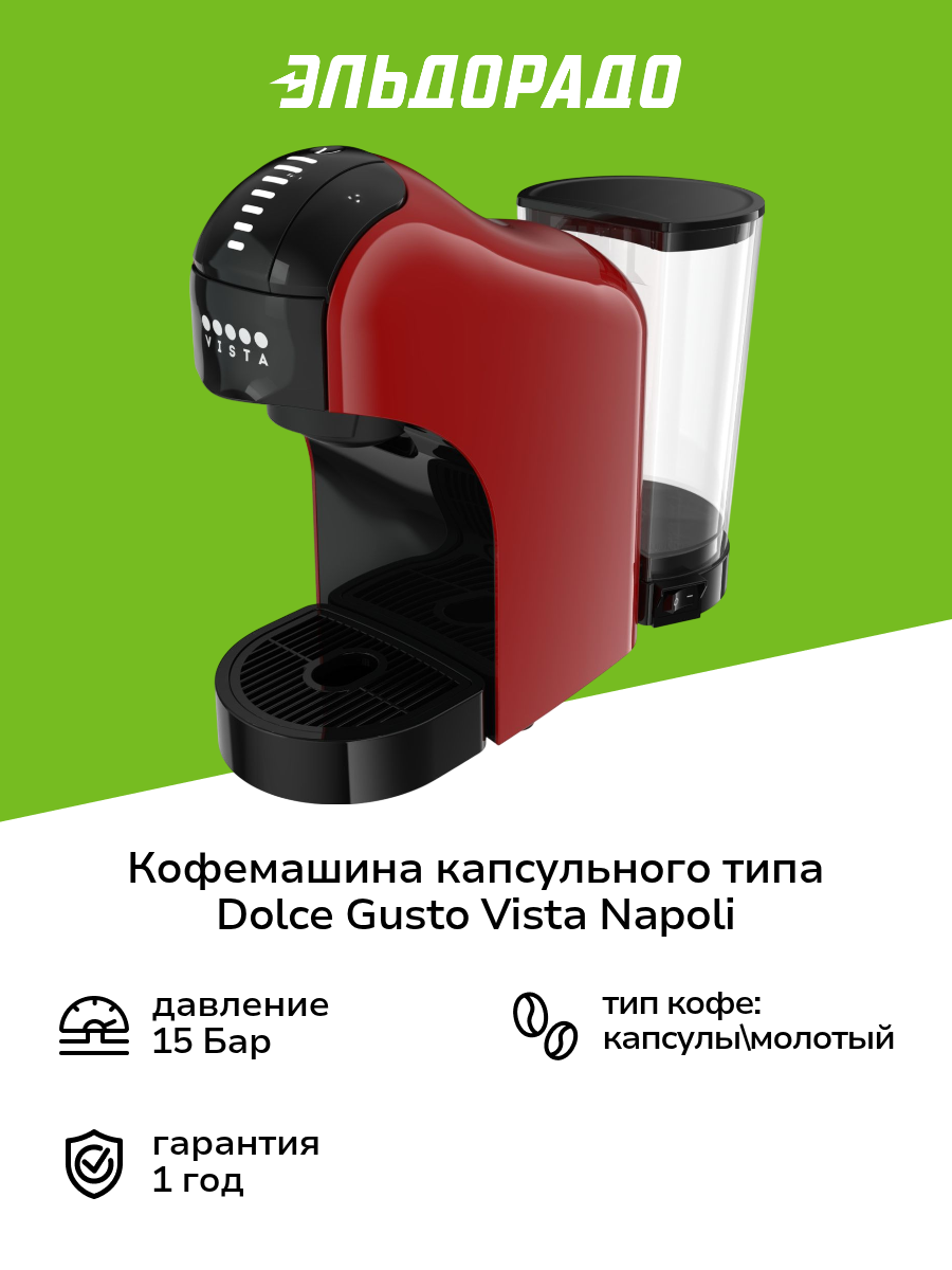 Кофемашина капсульного типа Dolce Gusto Vista Napoli DNS200R 3в1 красная: сравнение цен, характеристики, фото, актуальное наличие и цены.