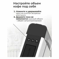 Характеристики: Тип: кофемашина капсульная Мощность: 1100 Вт Совместимость: капсулы, которые совместимы с системами Nespresso Капучинатор: есть Давление помпы: 19 бар Ёмкость бака для воды: 0.85 л Ёмкость бака для молока: 0.27 л Ёмкость бака для использованных капсул: 9–11 штук Напряжение: 220–240 В Частота: 50/60 Гц Размеры (ВхШхГ): 32х9.5х22.3 см Вес: 2.3 кг Цвет: белая