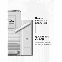 Регулируемая по высоте подставка для чашек; Съемный резервуар для воды; В комплекте: съемный лоток для сбора капель, съемный лоток для использованного кофе