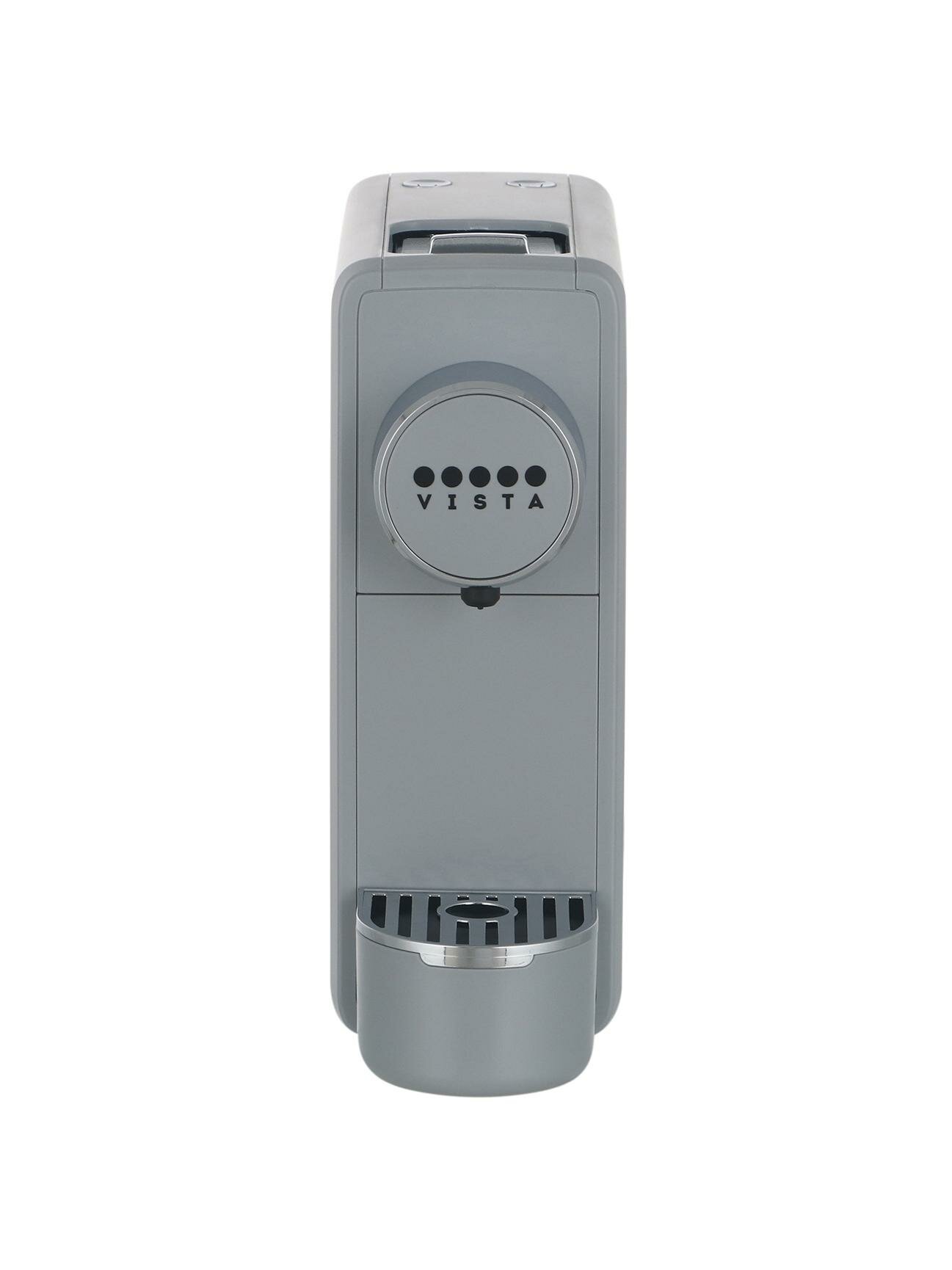 Кофемашина капсульного типа Vista Venetta Mini NS600 S с потребляемой мощностью 1100 Вт подключается в сеть через шнур длиной 1 м. Модель серебристого цвета выполнена в корпусе из металла и пластика. Резервуары для воды объемом 0,6 л и для использованного кофе можно снимать. На пластиковую решетку каплесборника емкостью 0,03 мл ставится чашка с максимальной высотой 12 см. Можно приготовить следующие виды напитков: эспрессо, лунго, ристретто. Давление составляет 19 Бар. Предусмотрена функция автоматического выключения и индикация включения. Вес - 2,3 кг.