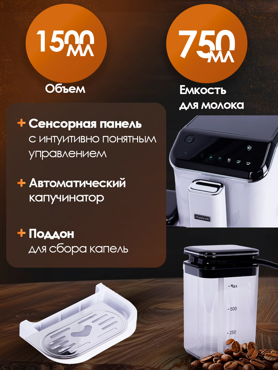 Купить Кофемашина автоматическая зерновая с капучинатором MANYA EAC20.01WH для дома и офиса с доставкой по всей России.