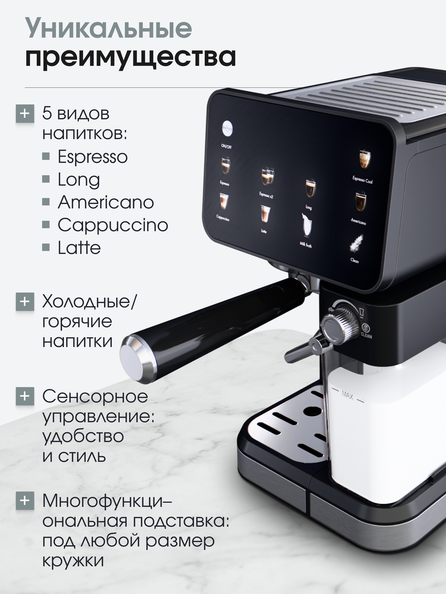 Купить Кофемашина MOOCHI, с автокапучинатором, сенсорная, 20 Бар, нержавеющая сталь с доставкой по всей России.