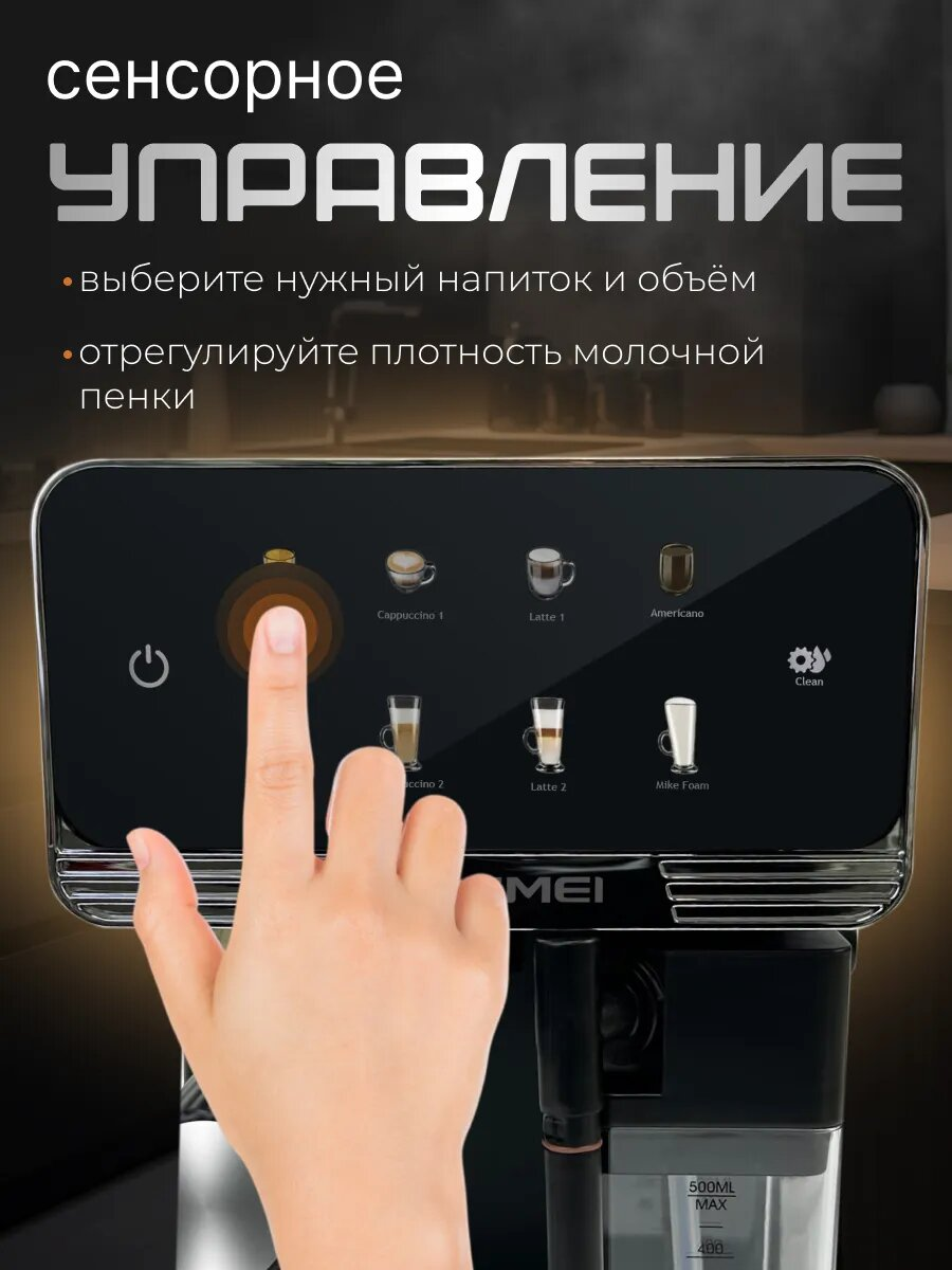Оптимальный объем резервуара для воды составляет 1,8 литра, а бак для молока - 0,5 литра. Вы можете настроить густоту молочной пенки и крепость напитка по своему вкусу.