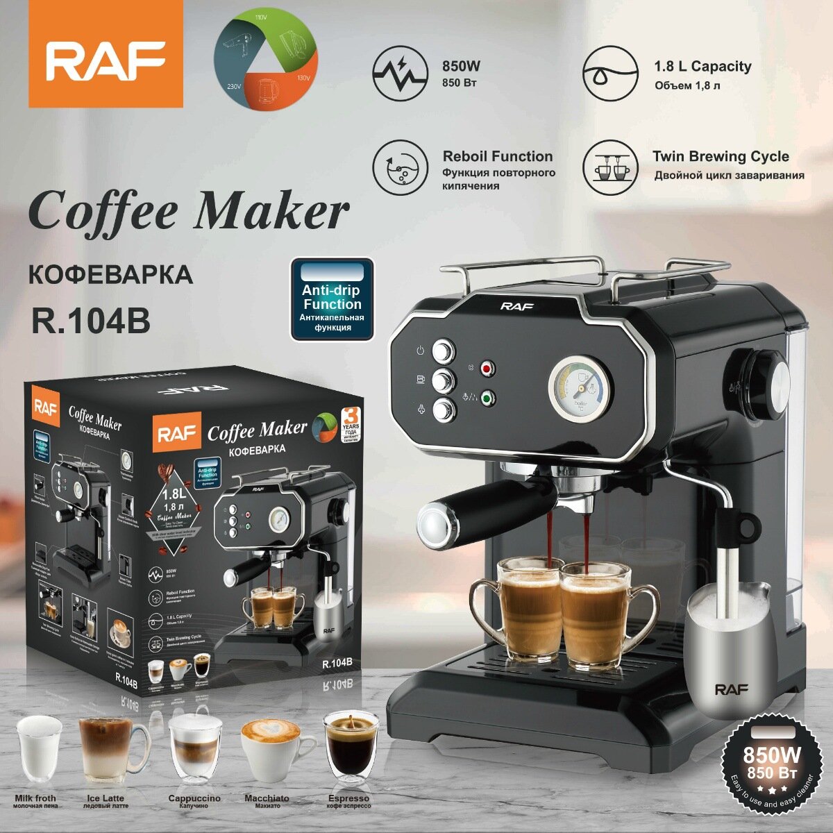 Кофемашина RAF R.104B, итальянская, для вспенивания, высокого давления, офисная
