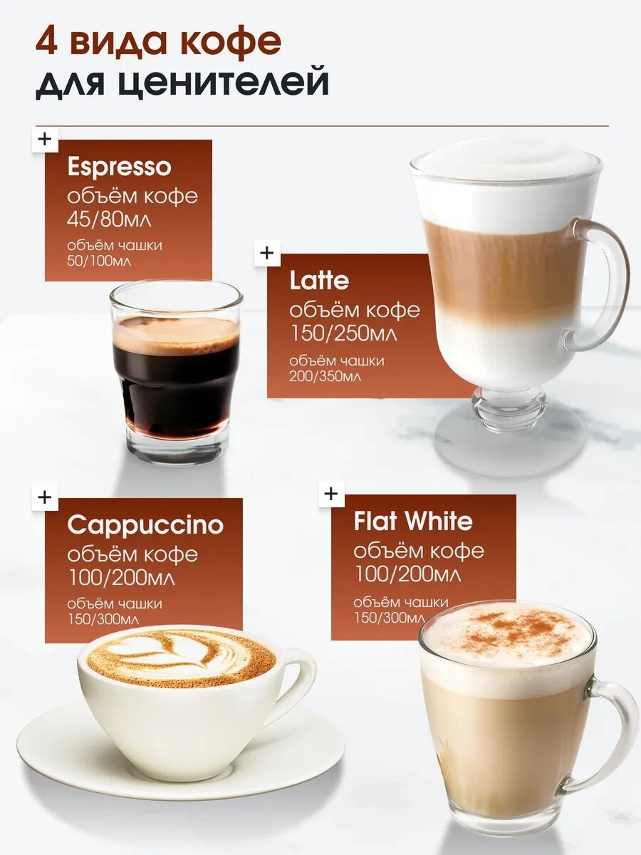 | Тип напитка | капучино, латте, флэт уайт, эспрессо |