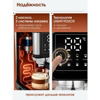 | Дополнительные функции | автоотключение после приготовления напитка, автоотключение при неиспользовании, блокировка включения без воды, одновременное приготовление двух чашек, подача горячего молока, подача горячей воды, подогрев чашек, предварительное смачивание, программа автоматической очистки, противокапельная система |