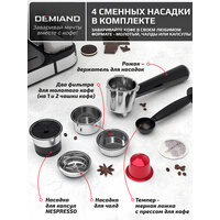 Две насадки для молотого кофе, для одной и двух порций: позволяют экспериментировать с различными сортами и степенями помола, что дает вам полный контроль над интенсивностью и ароматом вашего напитка.