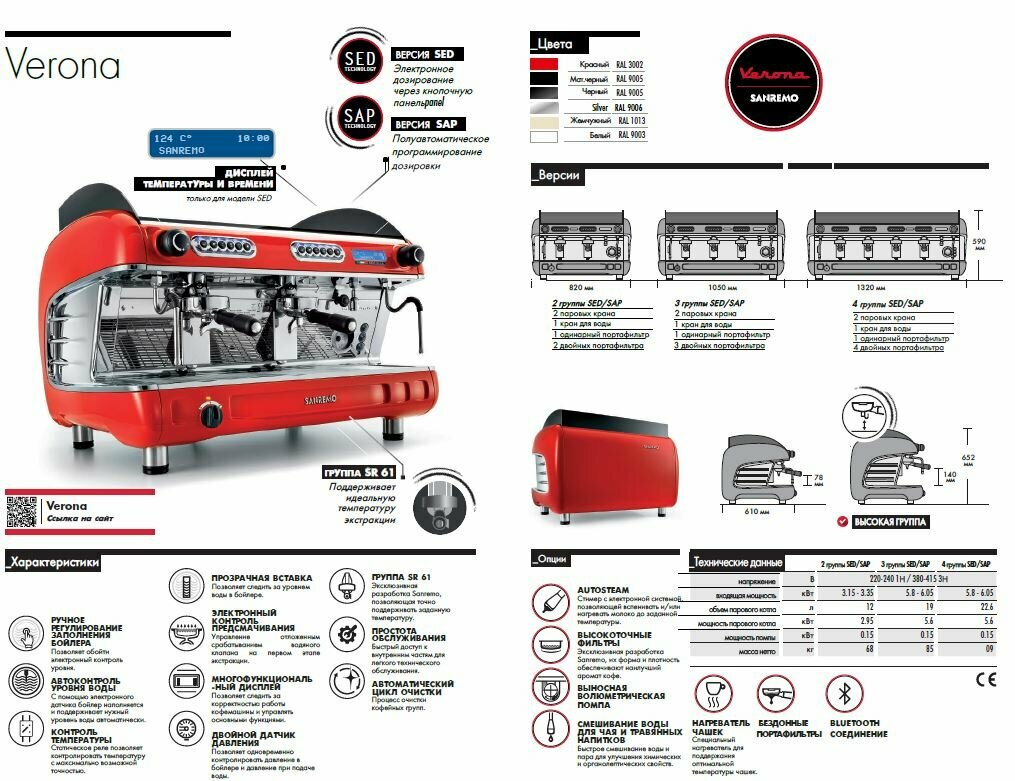 Купить Кофемашина рожковая профессиональная для дома и кофейни Sanremo Verona SED+AM (автомат) 2 высокие гр. экономайзер, чёрная с доставкой по всей России. Кофемашина рожковая профессиональная для дома и кофейни Sanremo Verona SED+AM (автомат) 2 высокие гр. экономайзер, чёрная: сравнение цен, характеристики, фото, актуальное наличие и цены.