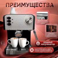 Купить Кофемашина рожковая с капучинатором TIFFANY TF-1605, 20 бар, 1350 Вт, регулировка порций, серебристый/черный с доставкой по всей России. Кофемашина рожковая с капучинатором TIFFANY TF-1605, 20 бар, 1350 Вт, регулировка порций, серебристый/черный: сравнение цен, характеристики, фото, актуальное наличие и цены.